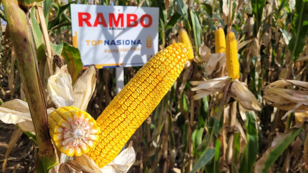 Odmiana BRV2604D Rambo uzyskała najlepszy wynik plonowania na ziarno w porejestrowych doświadczeniach odmianowych COBORU 2023, osiągając 16,39 t/ha przy 25% wilgotności, pokonując wszystkie 52 odmiany biorące udział w doświadczeniach.