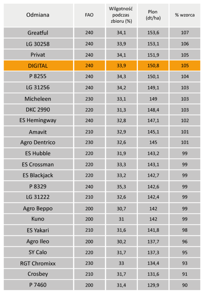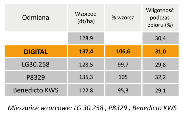 DIGITAL - Regularność plonowania, wysokie plony, suche ziarno