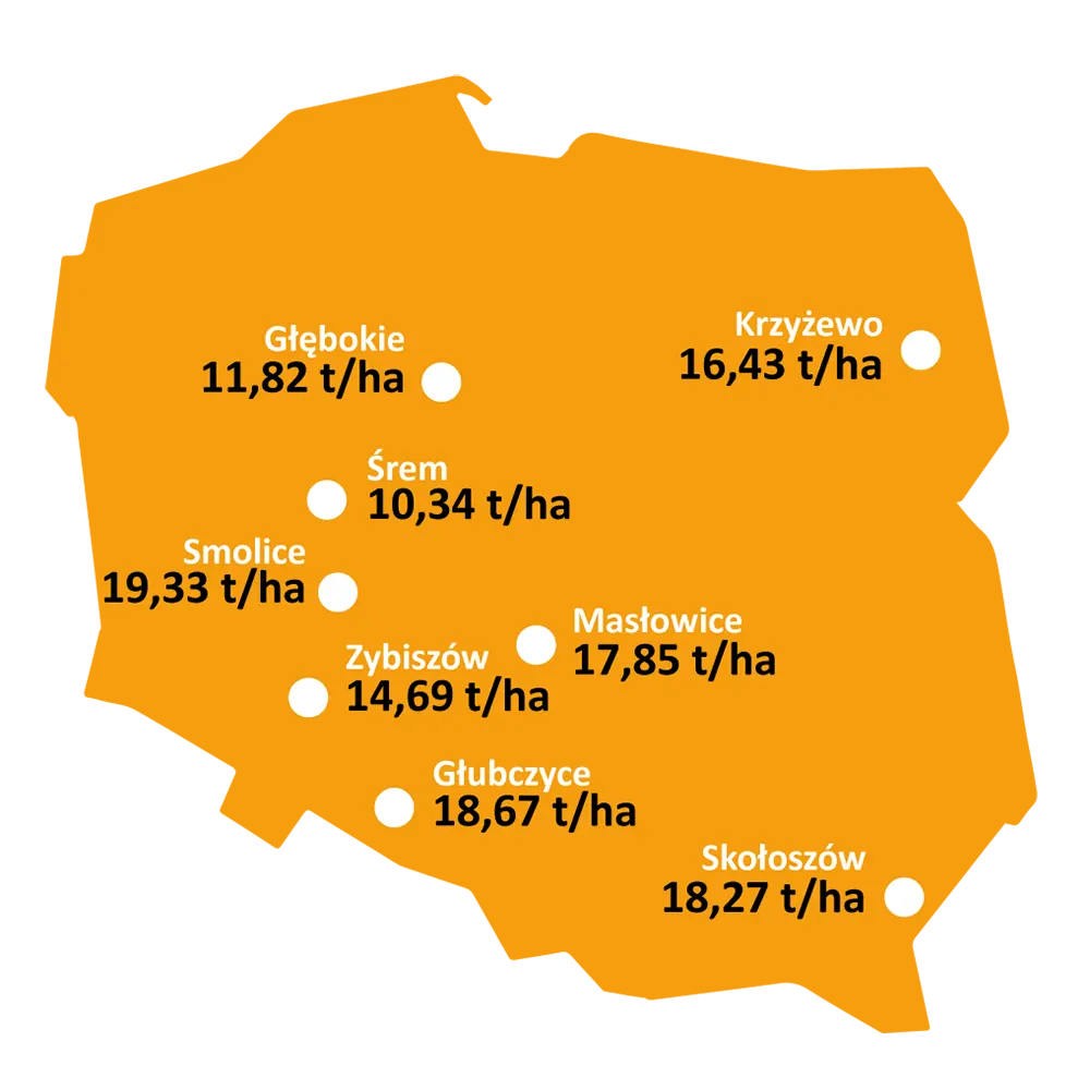 2020 – 15,85 t/ha           2021 – 15,37 t/ha