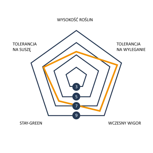 Odmiana z bardzo dobrym wigorem i intensywnym wzrostem początkowym oraz dobrą zdrowotnością przez cały okres wegetacji. Wysoka wartość handlowa ziarna ze względu na tolerancję na grzyby fuzarium, zawartość skrobi i dobrą wymłacalność.