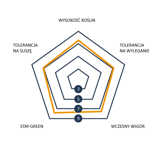 Odmiana charakteryzująca się łatwą uprawą, silnym wigorem początkowym oraz wysoką odpornością na choroby grzybowe, takie jak Fuzarium i Helmintosporium. Gwarantuje stabilne plony zarówno w latach suchych, jak i wilgotnych, na różnorodnych typach gleb.