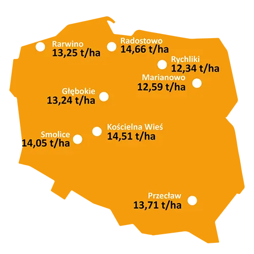 W badaniach rozpoznawczych COBORU/PZPK w bardzo suchym 2022 roku odmiana Nicolo osiągnęła 103% wzorca, plonując średnio 13,54 t/ha czyli o 900 kg więcej niż średnio odmiany wzorcowe oraz 1 tonę więcej od średniej wszystkich odmian w grupie wczesnej w doświadczeniach.